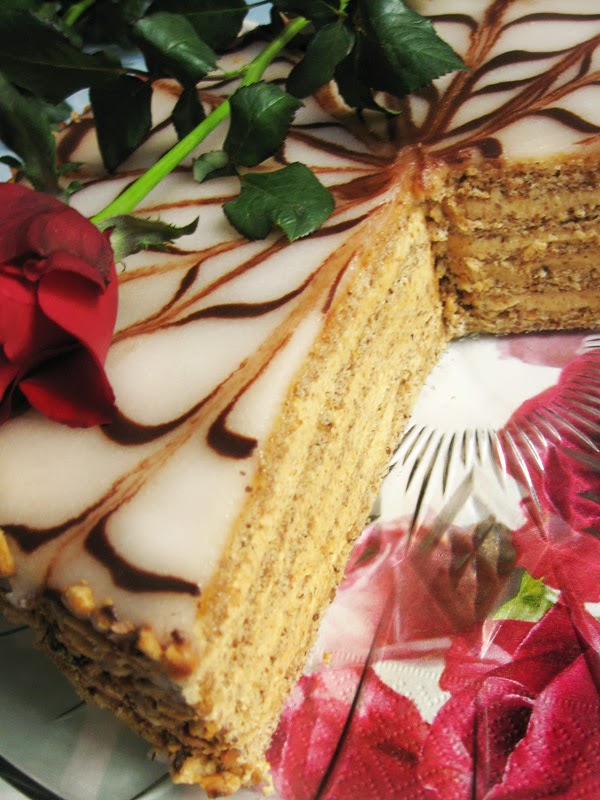 Jedina izmena u maminom receptu su žumanca koja sam kratko kuvala na pari, jer se u današnje vreme i o tome vodi računa, a belanca su termički obrađena jer se mute na pari sa špinovanim šećerom. Količina mleka kojim se orasi prelivaju daje jedan malo ređi fil sa kojim se malo teže barata, ali i to ima smisla, jer taj fil za dan-dva omekša koru ispod njega pa ona postaje sočnija. Vi možete preliti orahe sa nekoliko kašika zaslađenog vrelog meleka da dobijete gušći fil ili orahe sa mlekom malo ukuvati na plotni da se orasi malo zgusnu. Meni odgovara ova gustina.